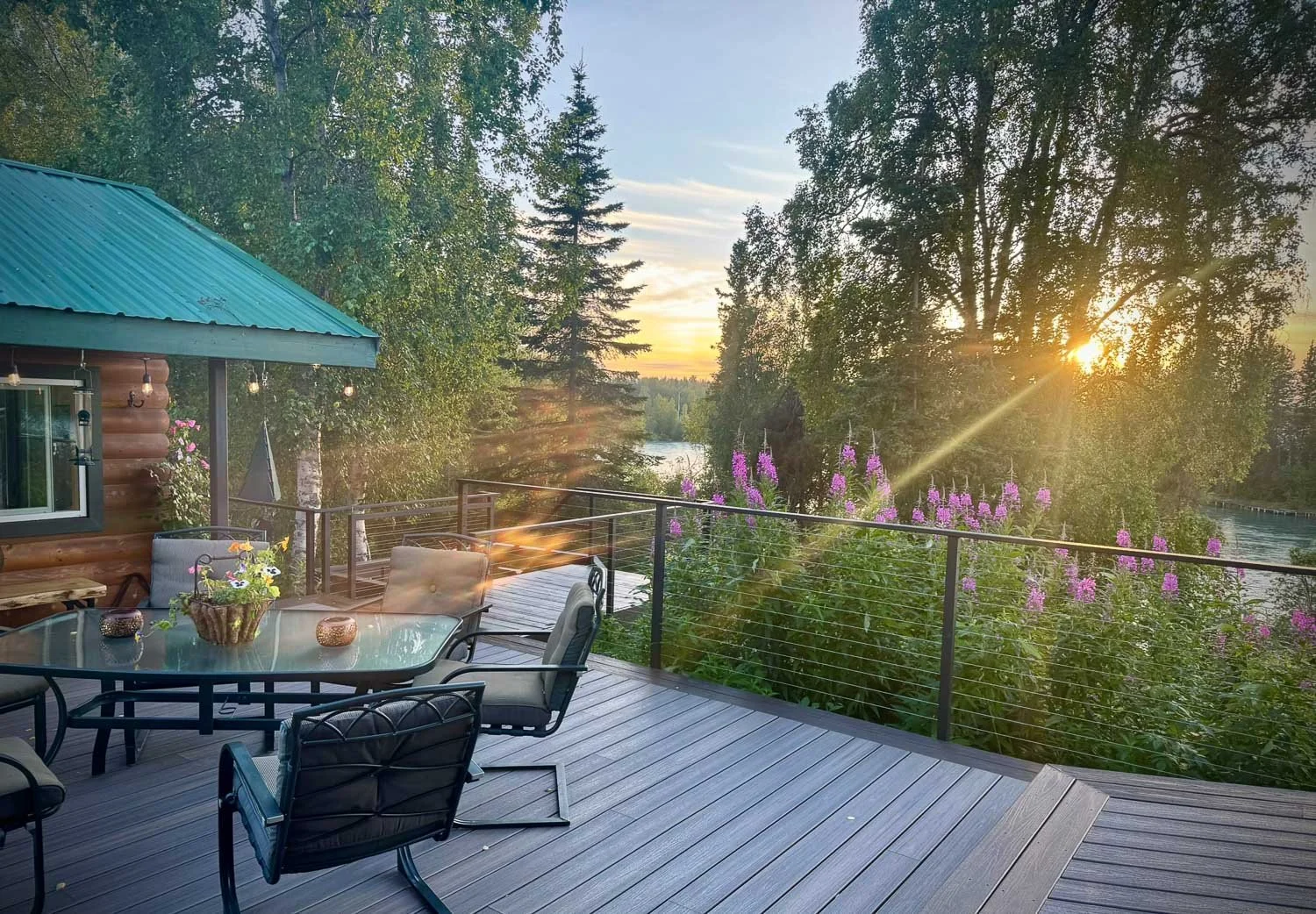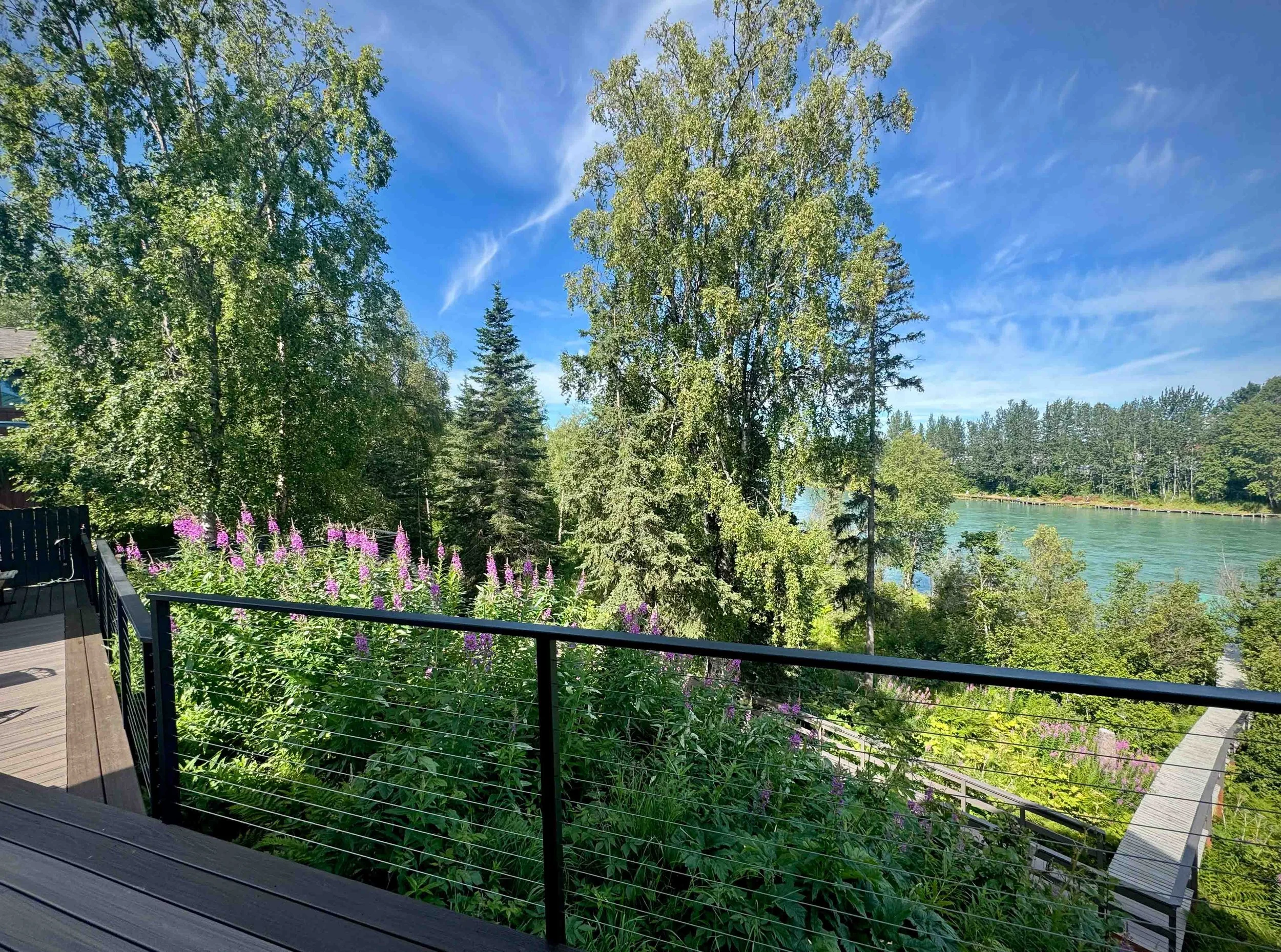 Private dock on the Kenai River to fish or ponder. Flowers galore. Gardens in bloom. Herbs in the greenhouse. Walk to town or to nearby world-class hiking or running trails. Space to breathe.